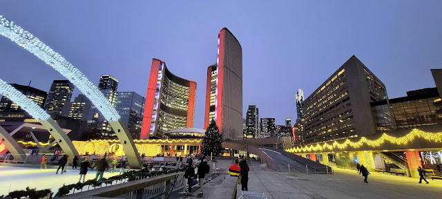We took the 4:20 shuttle downtown and then walked up to Nathan Philips Square, or City Hall. And the snow is already gone!