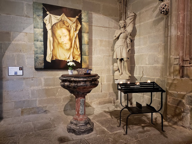 The central stained glass window of the choir from 1280 is one of the oldest ones in the south of France. Together with the upper trefoils (the Resurrection of Jesus and the Resurrection of the dead), it depicts the life of Jesus in 16 medallions.