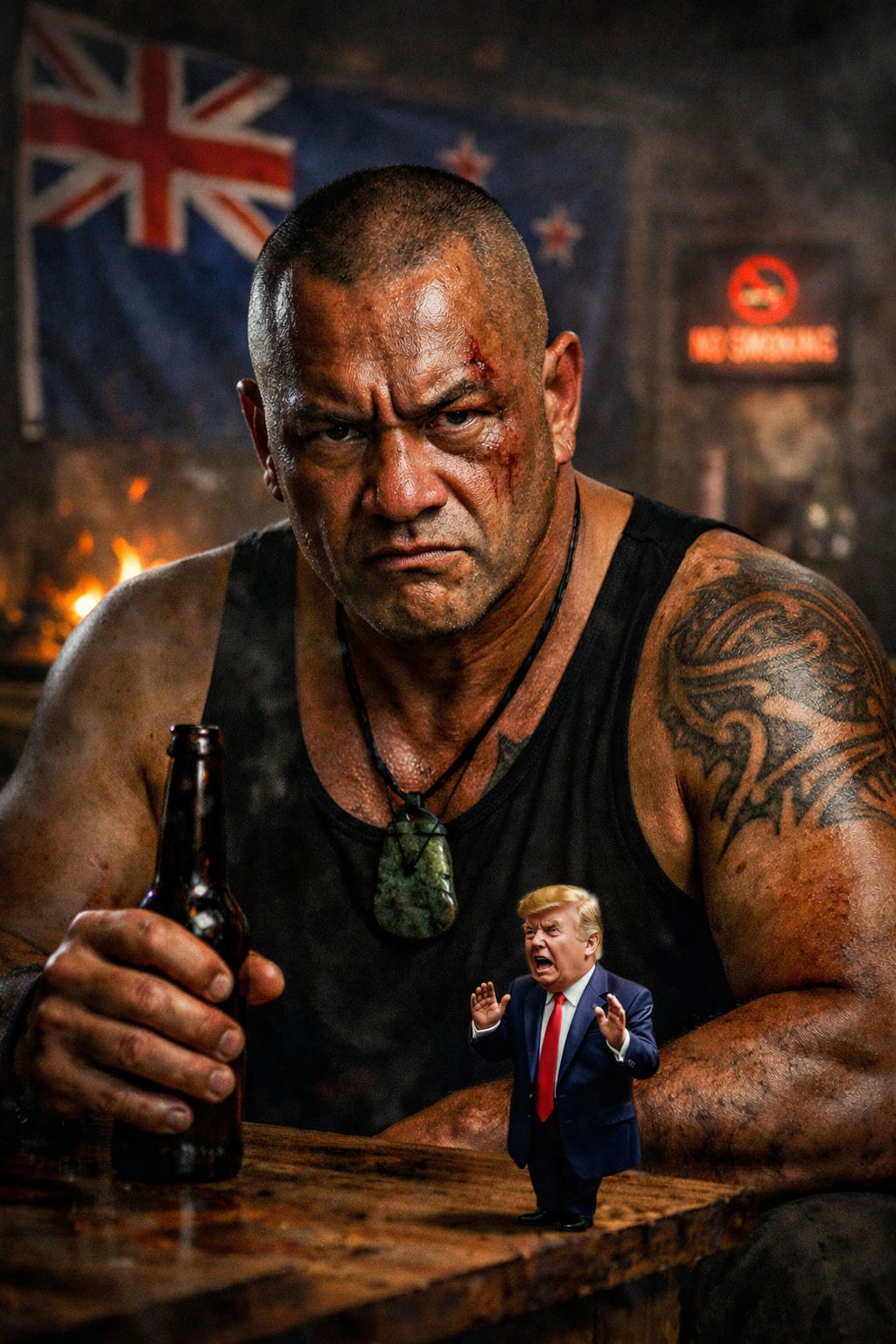 Nobody. Not ever. Because people who’ve met New Zealanders understand something fundamental about them. They’re the nicest people on Earth right up until they’re not. And when they’re not? Brother. Go rent Once Were Warriors. Go watch Jake the Muss sitting in that pub, quietly drinking his beer, minding his own business, and then some dickhead says the wrong thing and suddenly furniture is airborne, teeth are on the floor, and grown men are climbing out bathroom windows. That’s not a movie scene. That’s a cultural documentary. That is the Kiwi emotional spectrum: chill, chill, chill, chill, ABSOLUTE CARNAGE.
